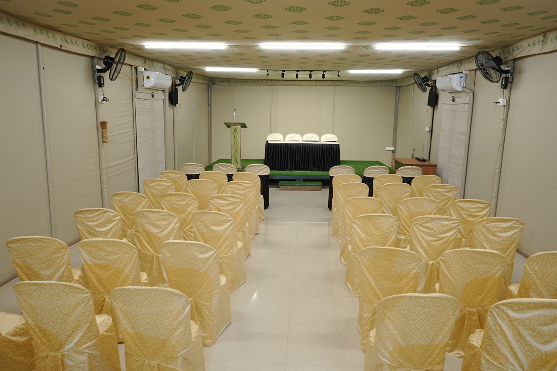 AC Hall, with a capacity of 100 guests, is the ideal choice for those seeking a more intimate and cozy atmosphere. Whether you're hosting a professional seminar, an in-depth conference, or a small private celebration, this venue offers the perfect blend of comfort and functionality. Fully air-conditioned, it provides a cool and refreshing environment, ensuring guests remain comfortable throughout the event. The hall is equipped with modern amenities such as high-quality audiovisual equipment, adjustable lighting, and ample seating arrangements, allowing you to tailor the space to your specific needs. With its inviting ambiance and attention to detail, AC Hall is the perfect venue for events that require focus, engagement, and personal connection.